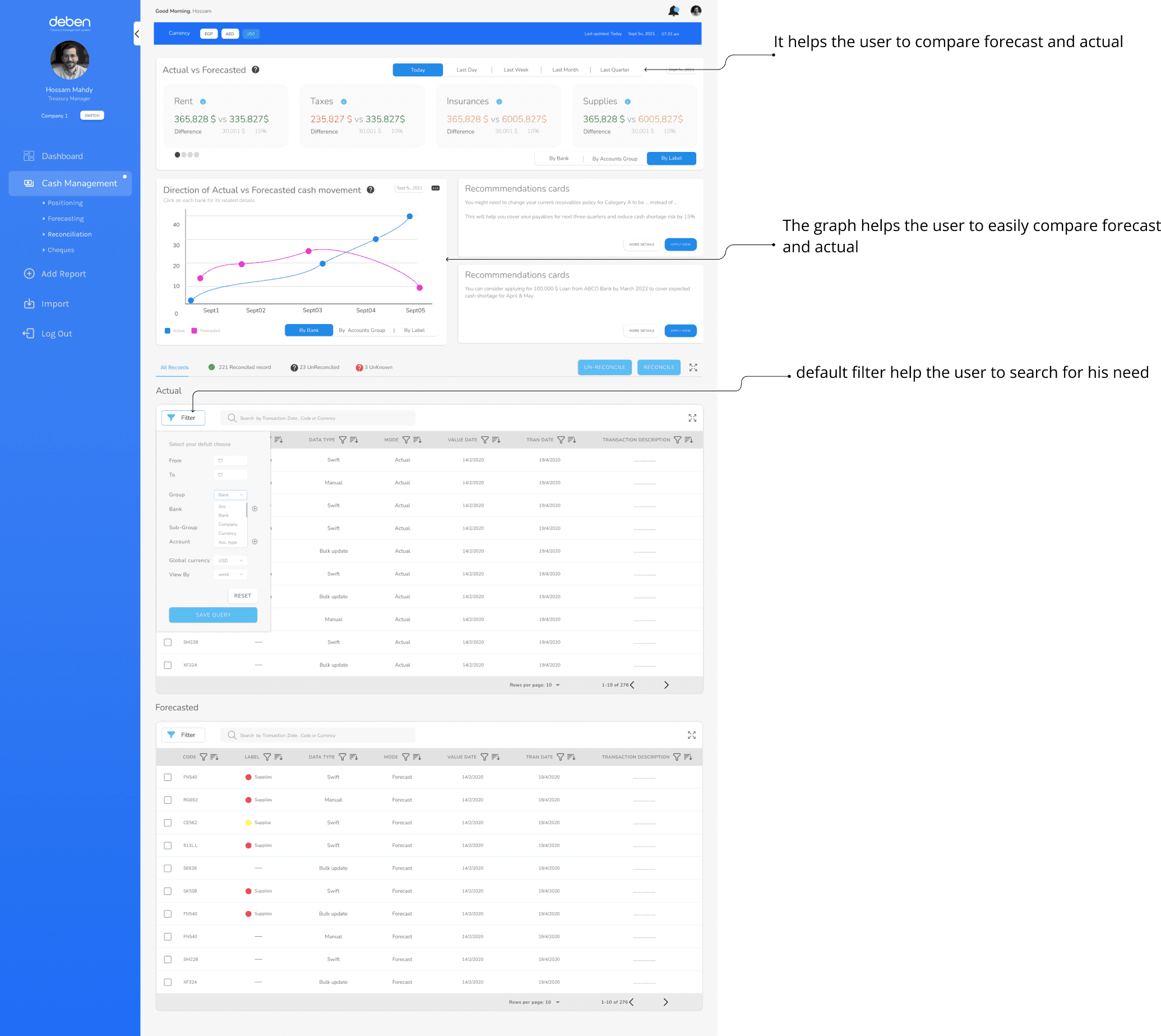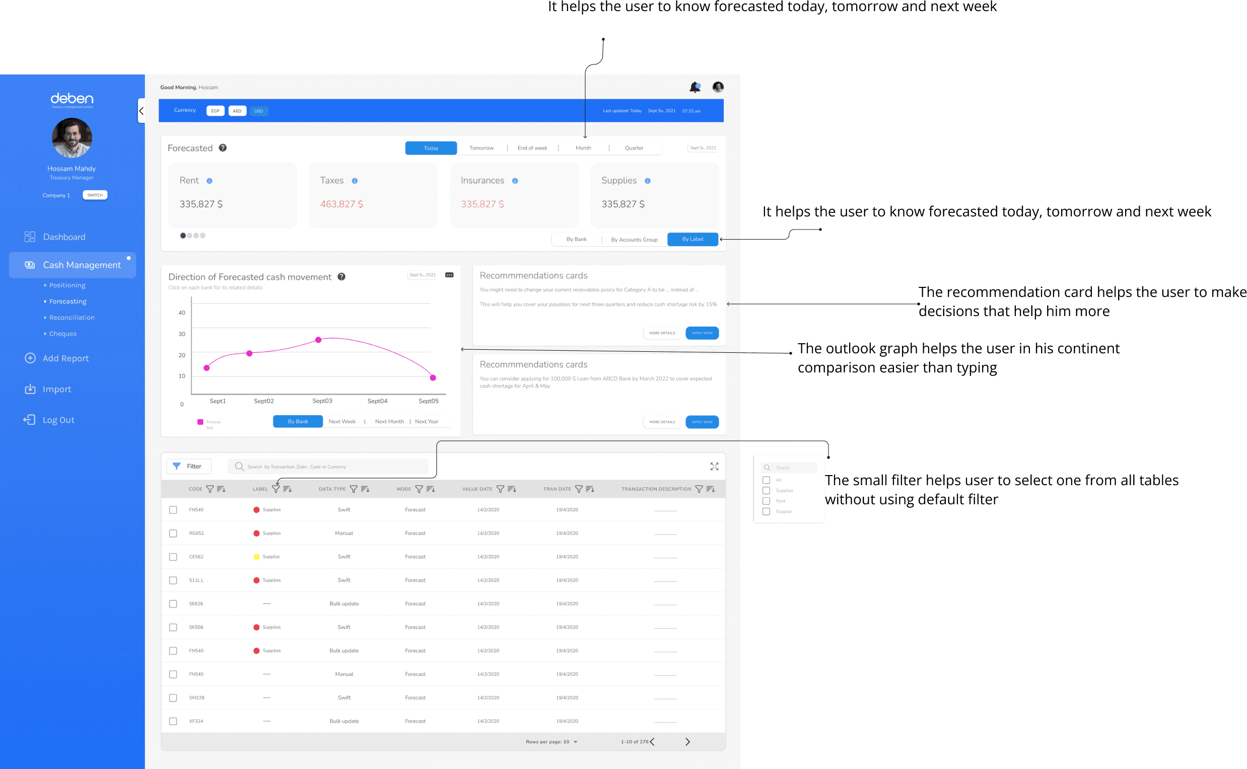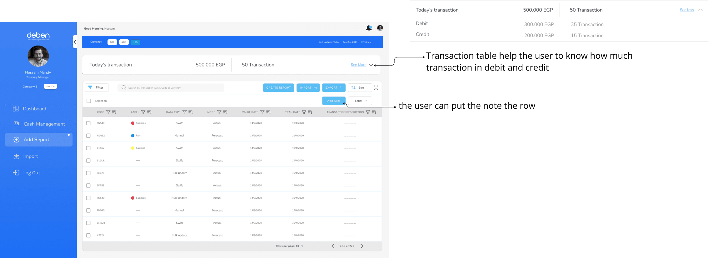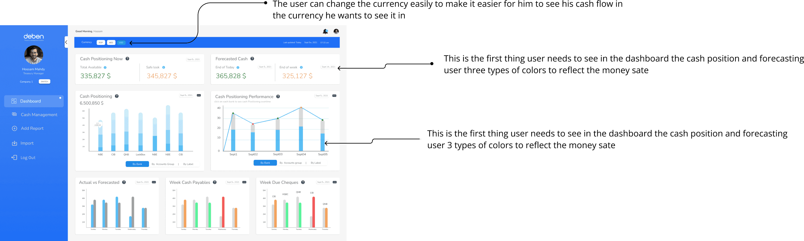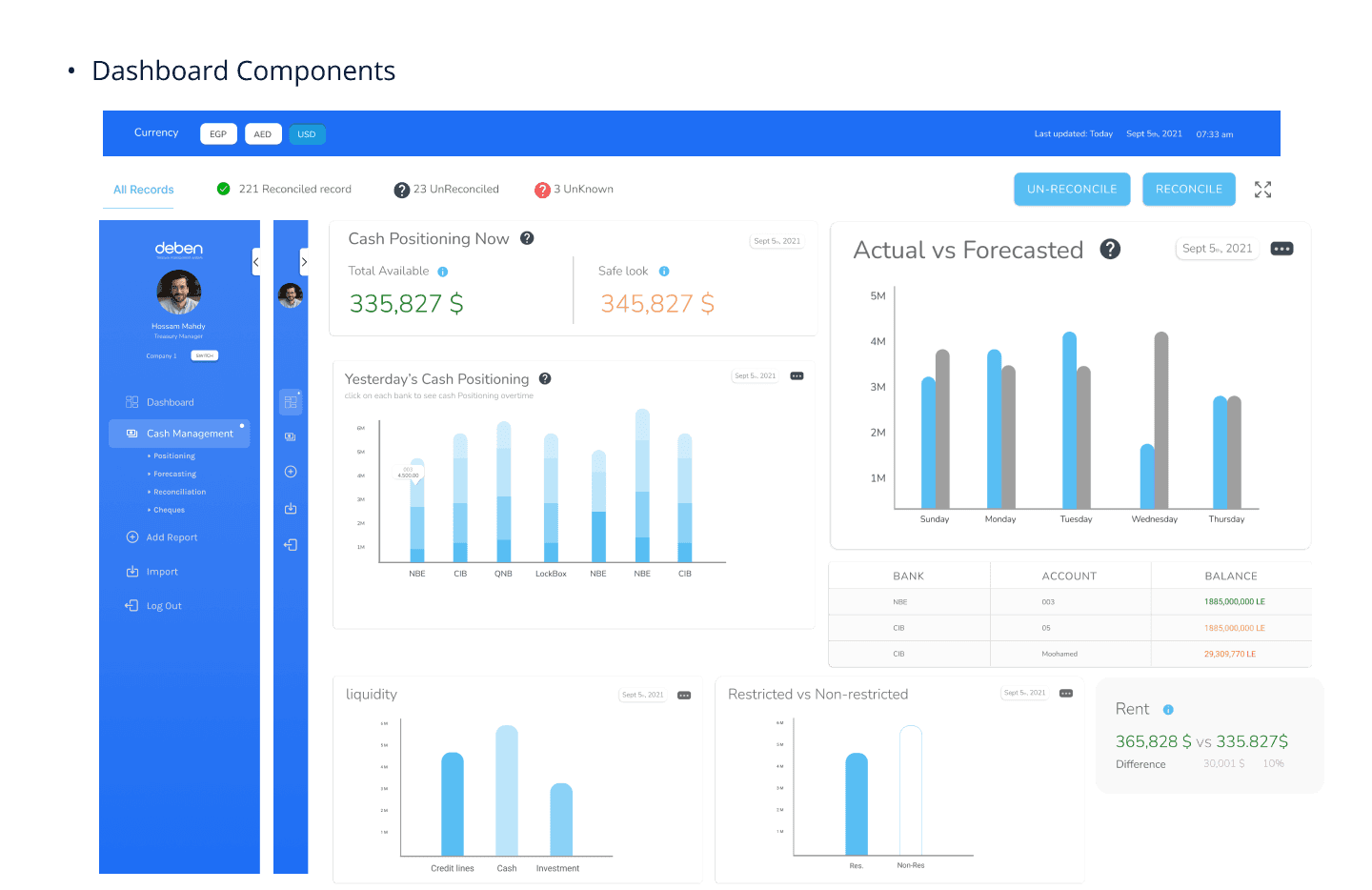 Deben is a treasury management system specialized in helping the finance managers and Accountants to manage their cash flows. The system should provide the value for finance managers to avoid the hassle of daily paperwork to spot the account balances and provide them with tools to help finance managers do their job effectively