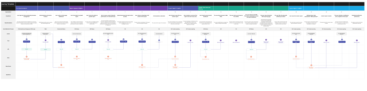 User Journey Mapping: Built journey maps to visualize how different roles interact with financial performance data and identify friction points.
